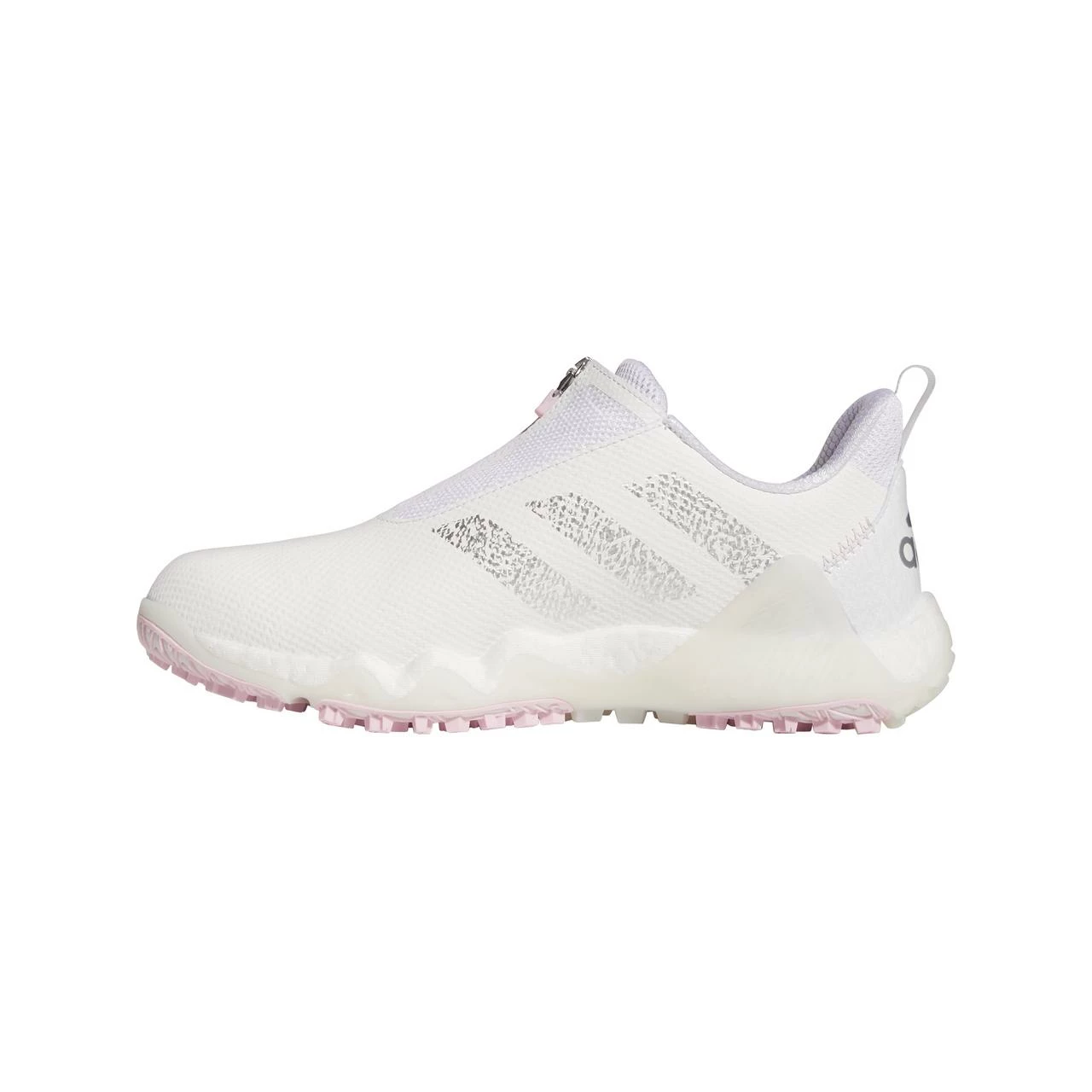 These women’s adidas golf shoes are designed for performance on the links. The full-length BOOST midsole delivers energy return with every step. The spikeless outsole features Twist Grip traction with sidewall wraps for enhanced support. The mesh upper has an added film to provide waterproof protection and keep the shoe clean. The BOA® Fit System lets you dial in a precise fit, and the shroud construction with a zip closure gives it a clean look. Made with a series of recycled materials, and at least 50% recycled content, this product represents just one of our solutions to help end plastic waste.