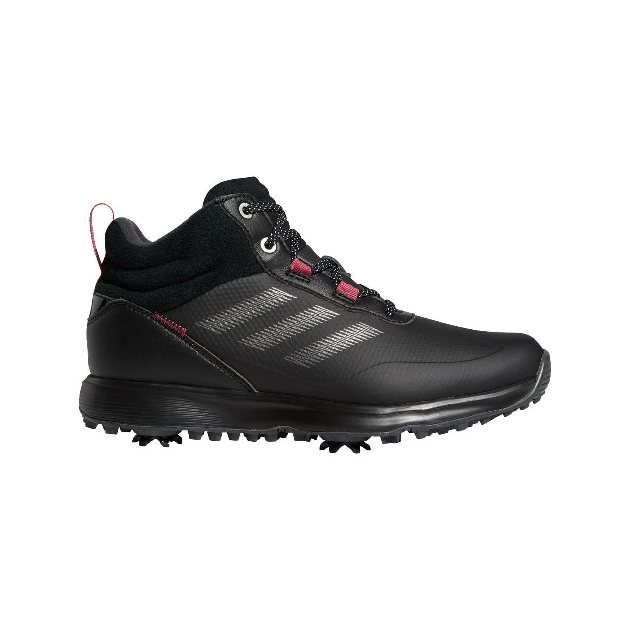 Playing golf when it’s cold and wet requires dressing for the conditions. These women’s golf shoes are designed for wet weather. A spiked outsole grips soggy ground. Their mid-height boot cut with RAIN.RDY seals out moisture.