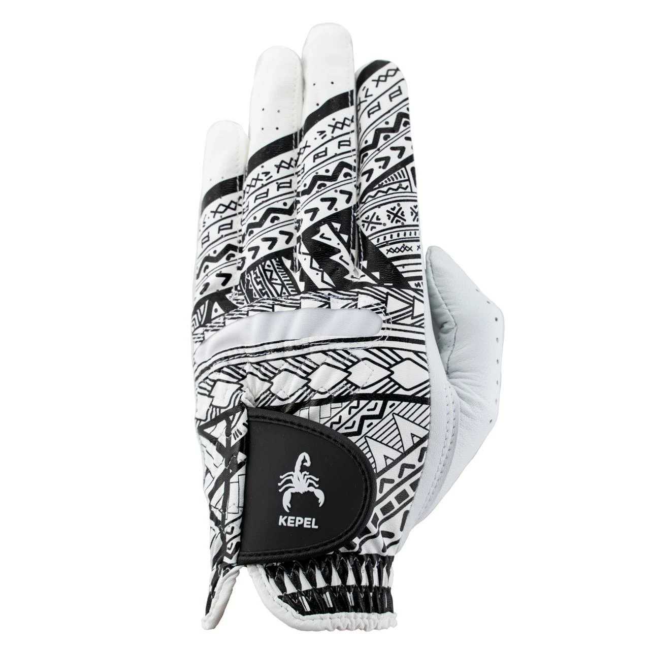 Have a smashing round with the Tribal Action glove. Featuring a dynamic print in black and white, this premium Cabretta leather glove fits snugly into your hand and makes a unique fashion statement. Inspired in Polynesian and South American pre-Columbian linework.
