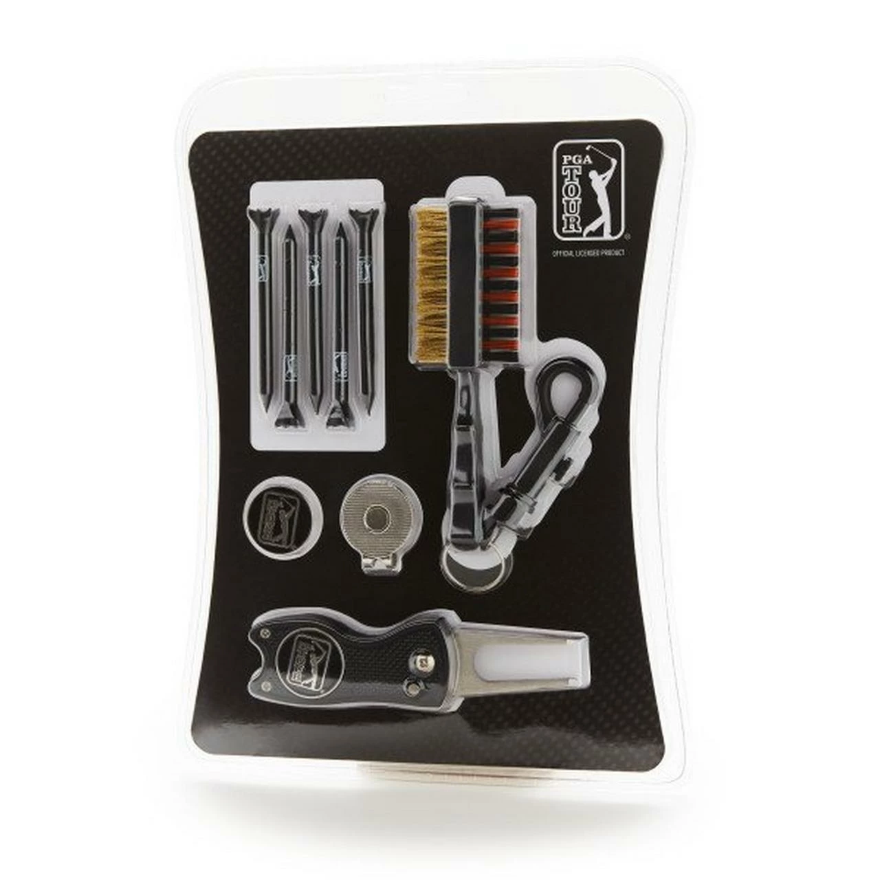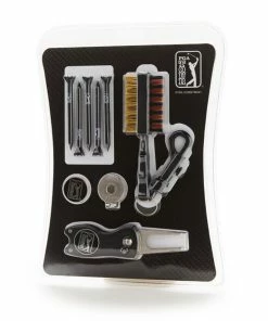 Get ready to hit the greens with this Game Enhancement Starter set. This set includes a ball marker, Tee, Cap clip, Divot tool, and Brush & hook.