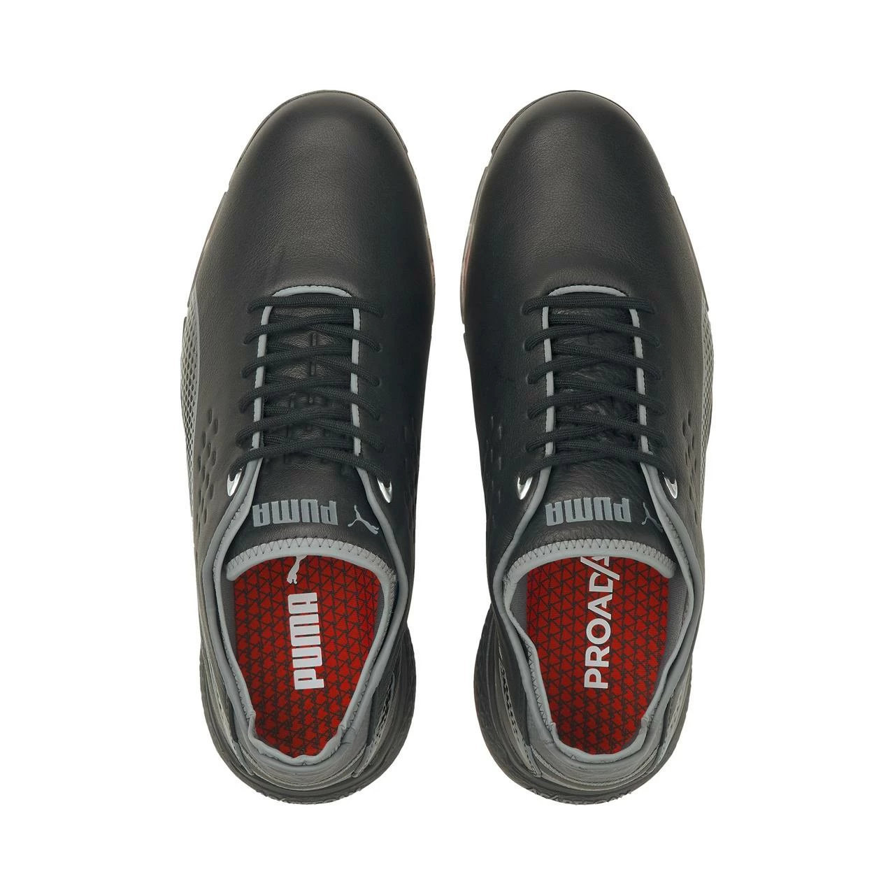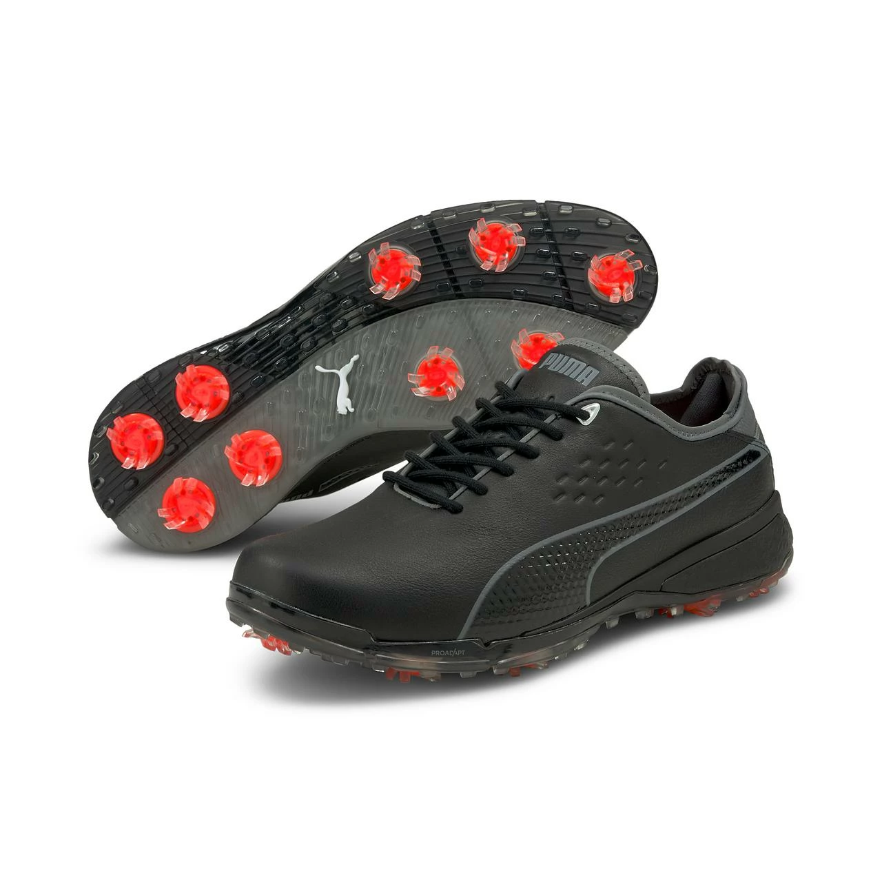 Born from revolutionary ideas and innovative concepts the new PUMA PROADAPT 2.0 is designed to meet the needs of the world’s best golfers. The introduction of ADAPT Foam in the heel provides a lightweight solution for stable cushioning that gives unrivaled ground feel and energy return. The Topline Chasses sit atop the ADAPT Foam and wrap around the heel providing the extra stability and torsional rigidity needed for the swing. The outsole features Dual Density Tornado cleats with 4 PWRADAPT PODs in the heel allowing each cleat to interact with the ADAPT Foam independently. The upper features an ADAPTIVE FIT SYSTEM that utilizes a MOLDED COMFORT COLLAR on the inner, and premium ATLANTIS LEATHER on the outer bootie. While the ADAPT-WRAP Tongue wraps from the medial side over the instep of the foot providing a secure fit that can adapt to fit any foot shape. With premium performance details combined with an elevated design aesthetic the PROADAPT 2.0 will give you the confidence to attack with every swing, in any lie.