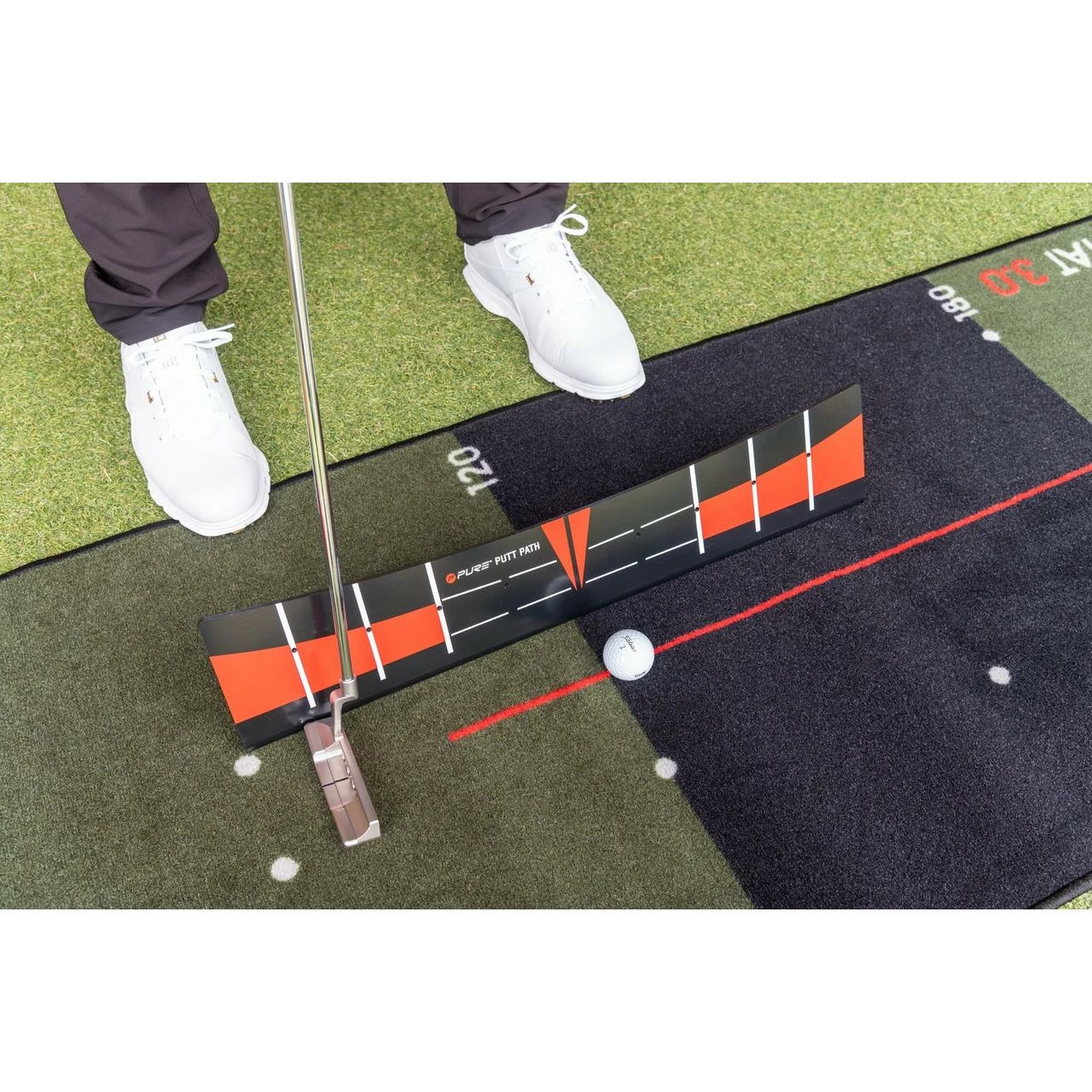 The Pure2Improve® Putt Path is a simple to use and effective putting trainer to groove a smooth and consistent stroke. Utilize the Putt Path with tees in the pre-drilled holes to develop a stroke with a shorter takeaway, a square face at contact, and an accelerating through stroke for better touch, distance control, and accuracy. Use at home or on the golf course practice green. Durable, portable, no gimmicks. Improve your putting and scoring with the Putt Path.