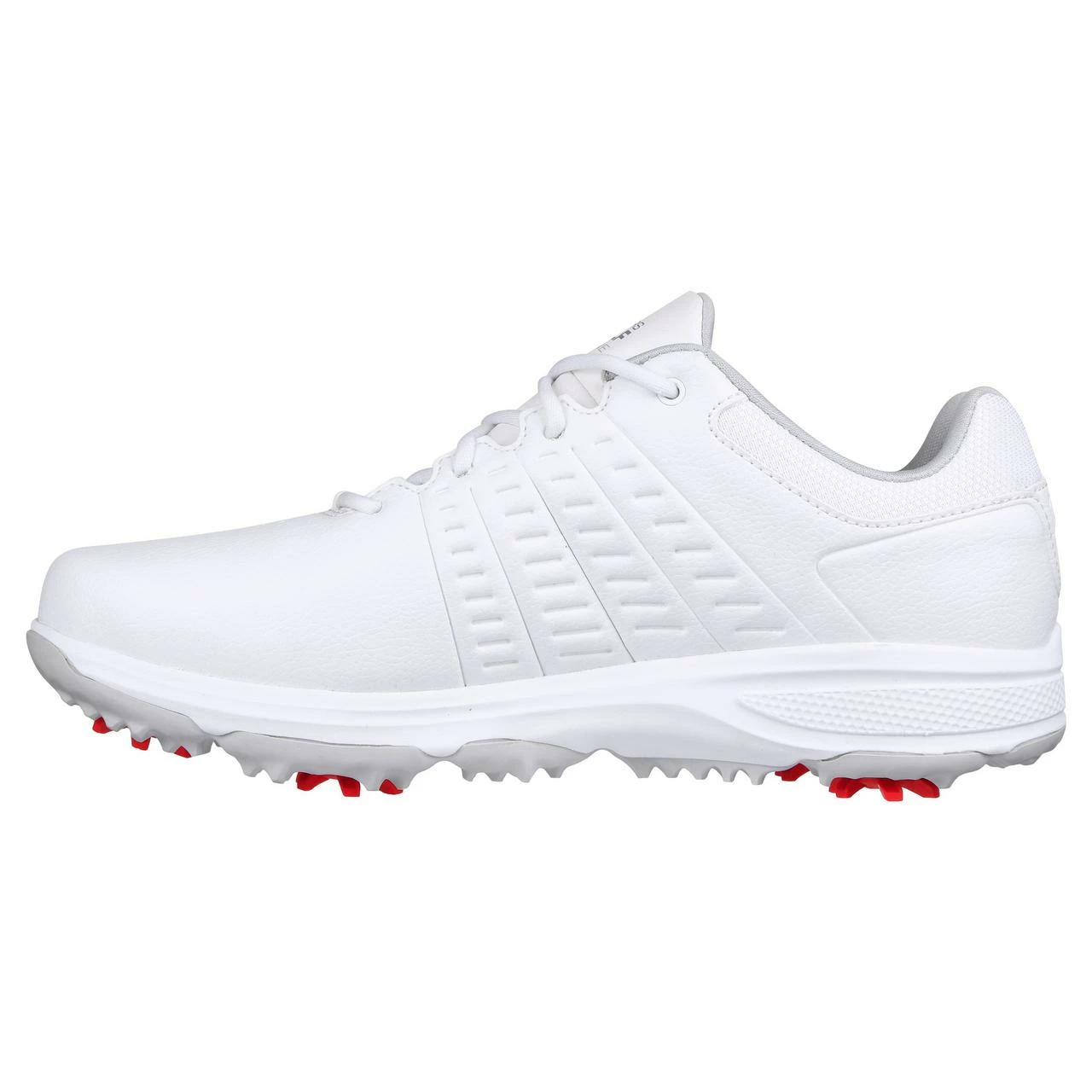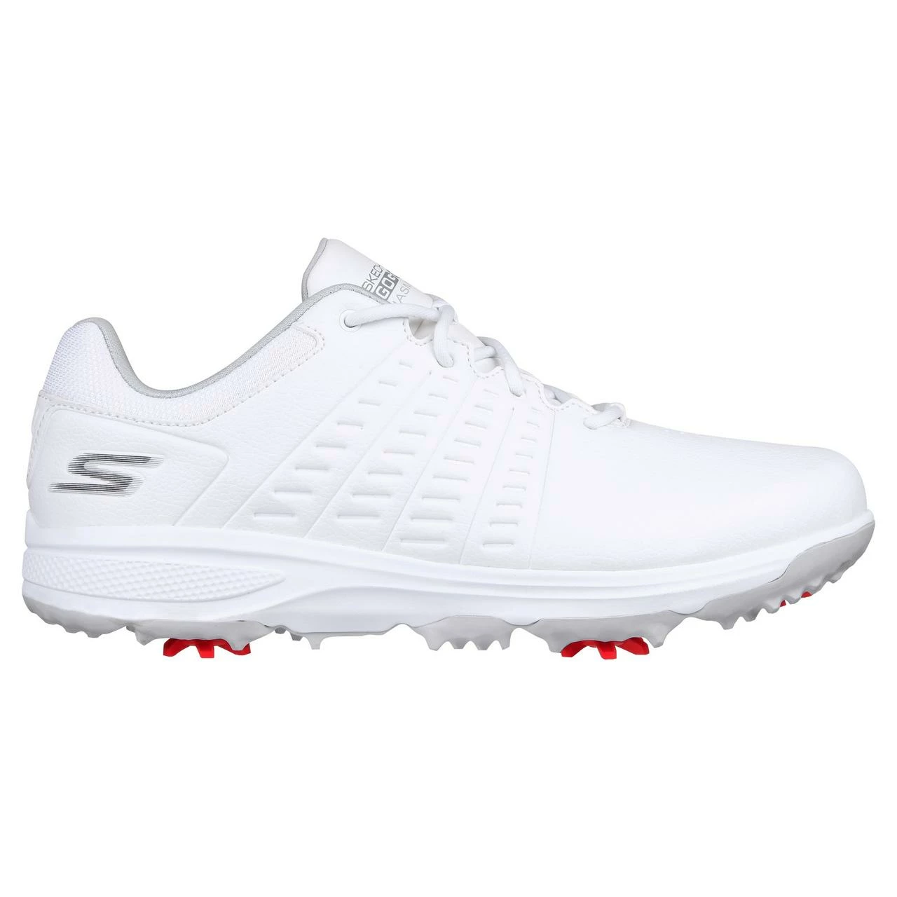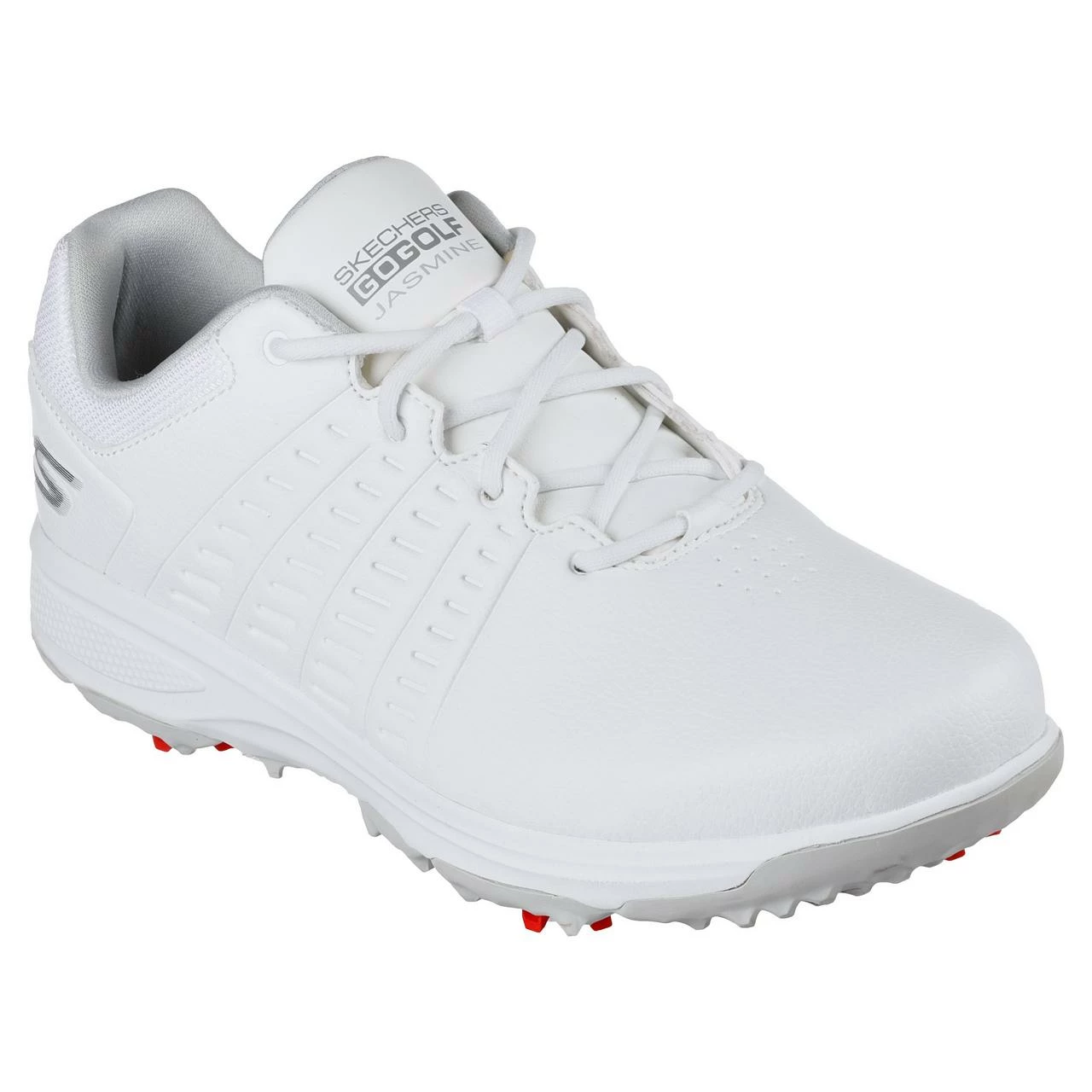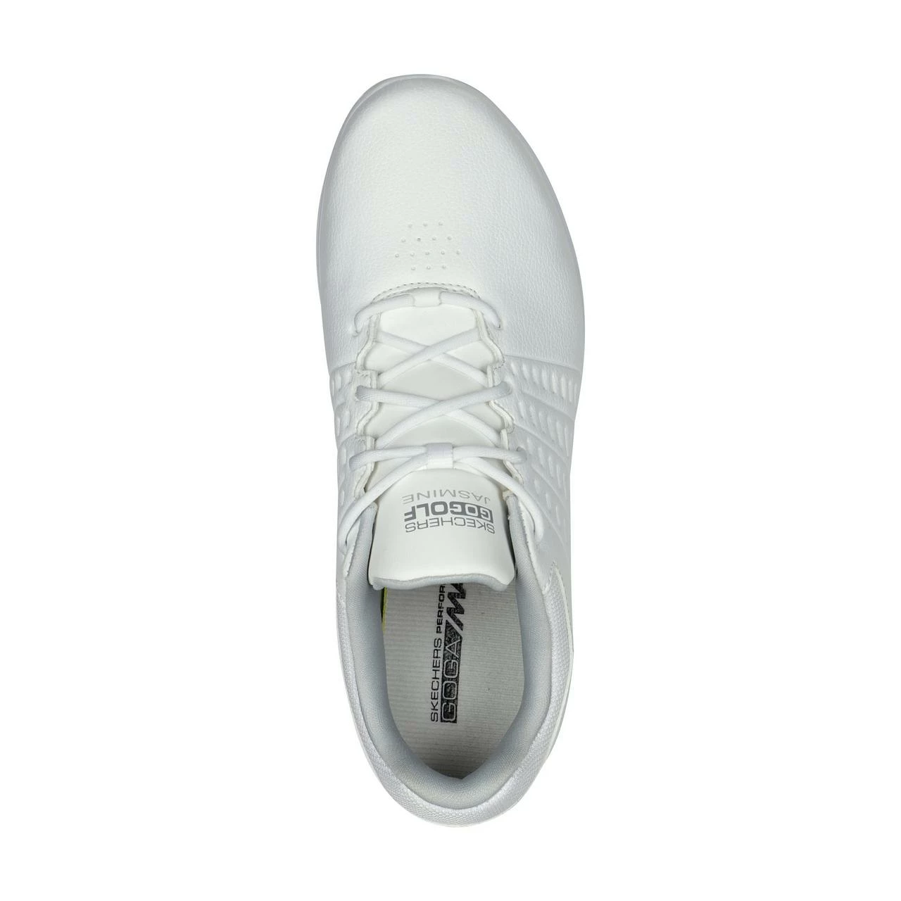 Put on your best game with Skechers GO GOLF® Jasmine. This golf design features a leather upper with a Skechers Goga Max comfort insole with replaceable Softspikes®, lightweight ULTRA GO® cushioning and waterproof protection.