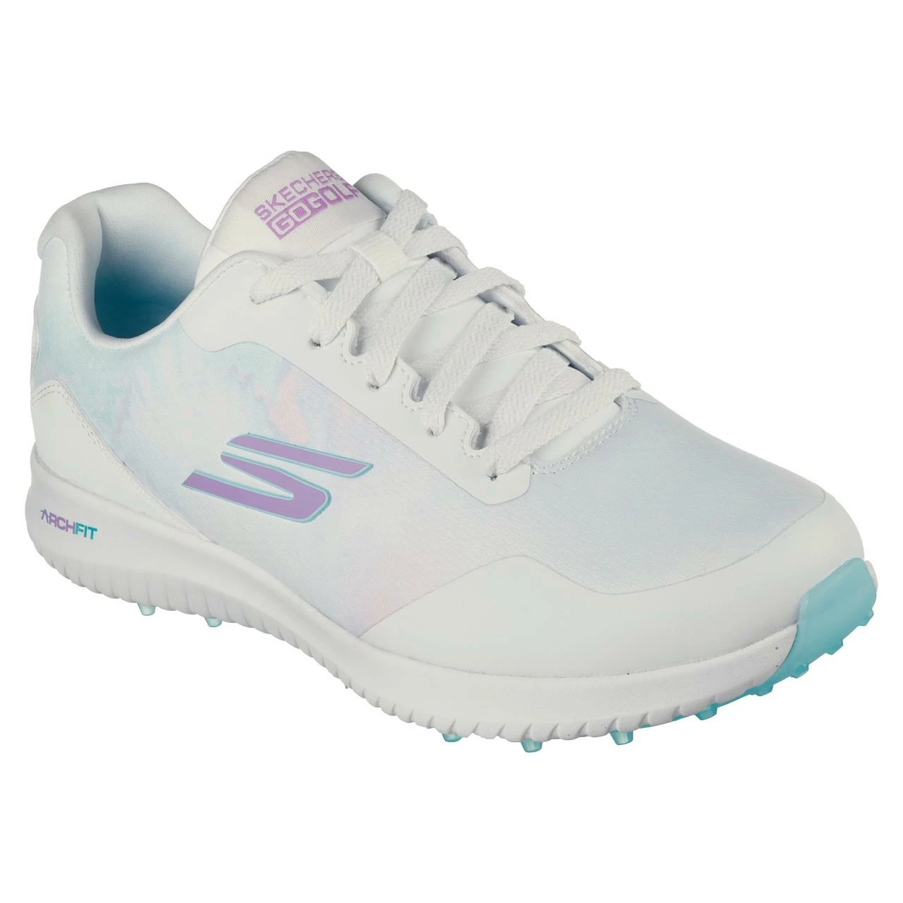 Bring some color to your game in all-day supportive comfort wearing Skechers Arch Fit® GO GOLF Max™ 2 – Splash. This spikeless waterproof design features a lace-up watercolor print synthetic upper with a removable supportive Arch Fit® insole, plus ULTRA FLIGHT® cushioning.