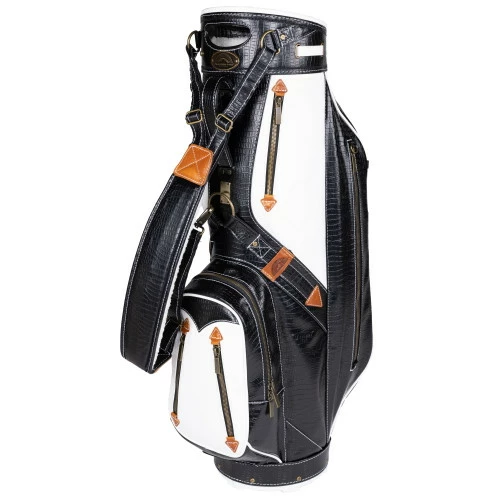 A handsome, traditionally styled cart bag that reminds us of earlier generations of golfers, the Dundee is constructed with crocodile vinyl and has leather and brushed brass accents.