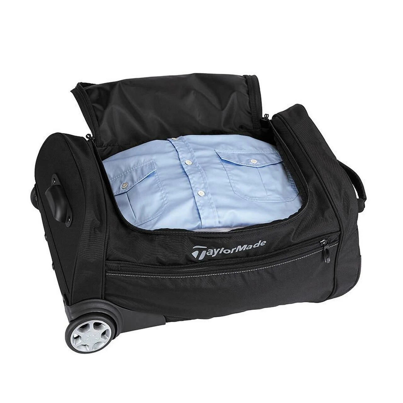 A great option for golfers who find themselves travelling, the TaylorMade Performance Rolling Carry On Bag is a great choice the uses a large U-Shaped opening for easy access to contents while the smooth rolling wheel provide effortless mobility. High-quality piping guards are extra-durable versus standard wear and tear to keep your carry on bag protected.