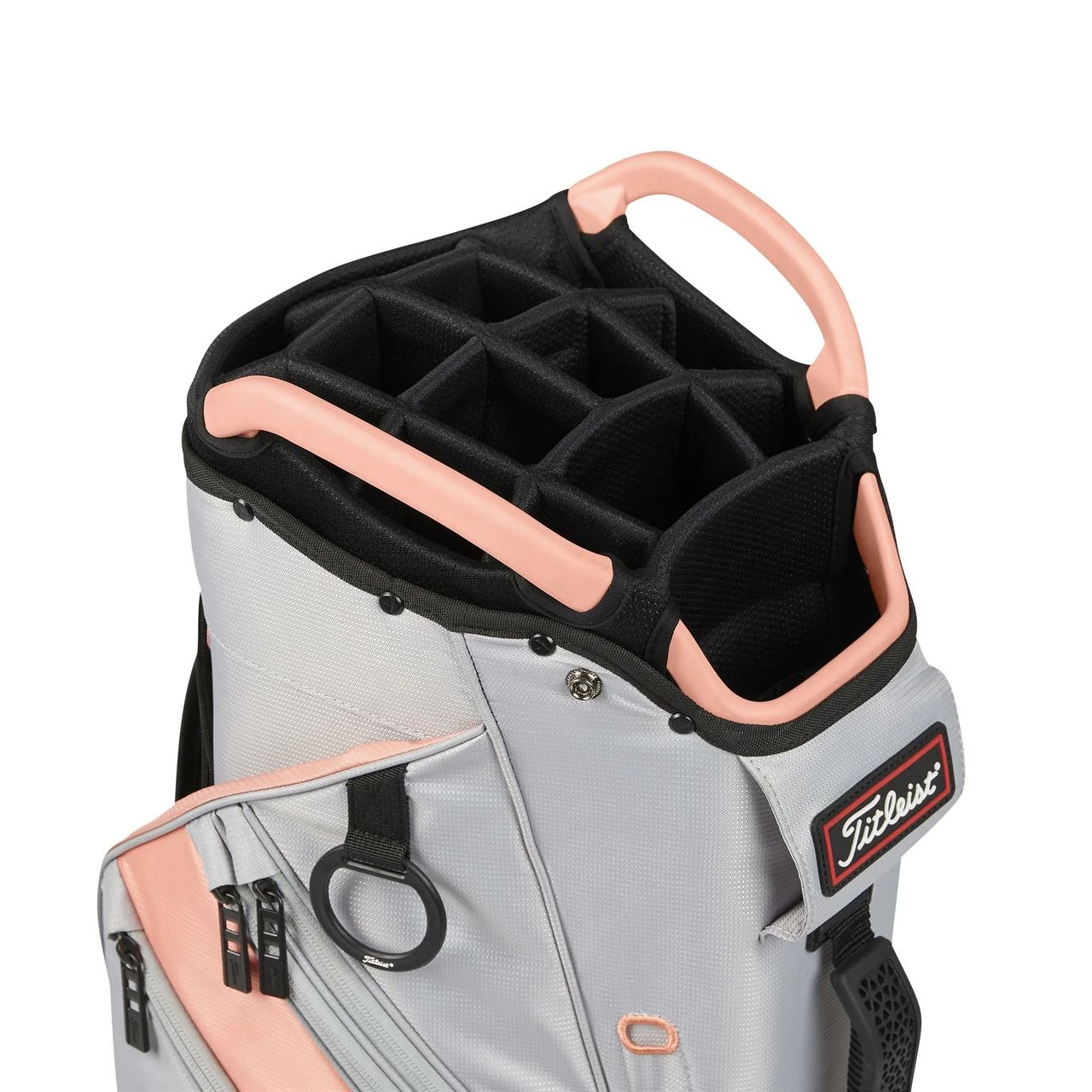 The Cart 14 Bag includes a lightweight, symmetrical design with 10 cart-accessible pockets for improved storage and convenience on the golf course.